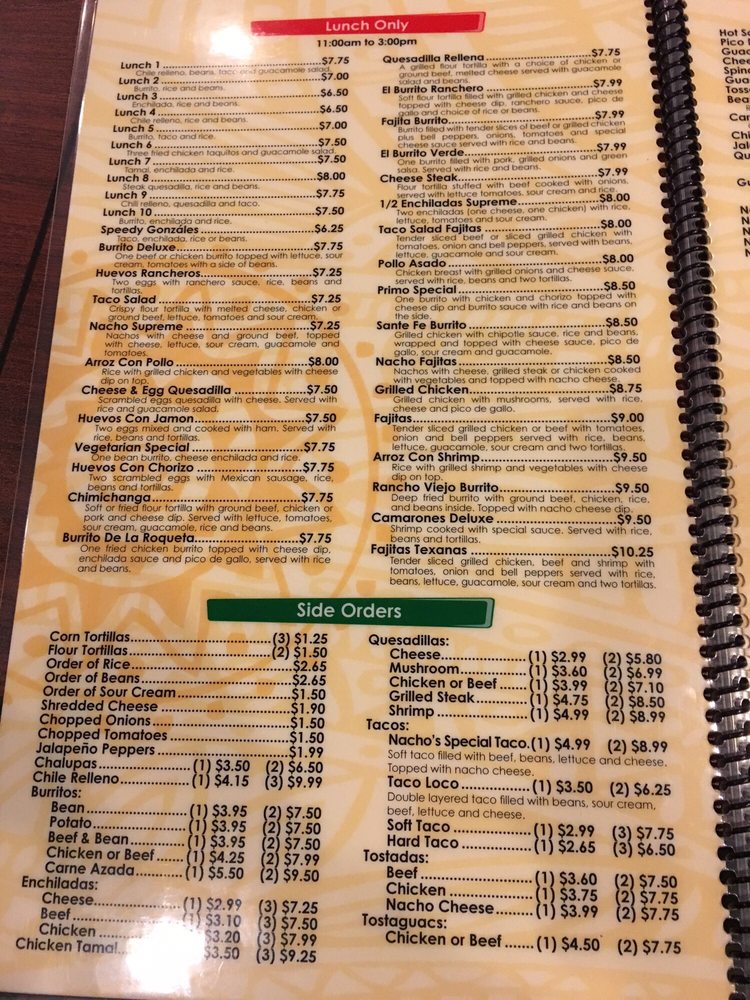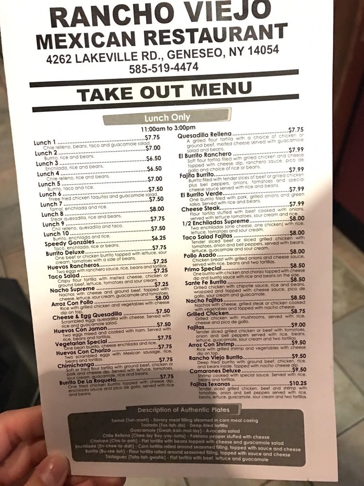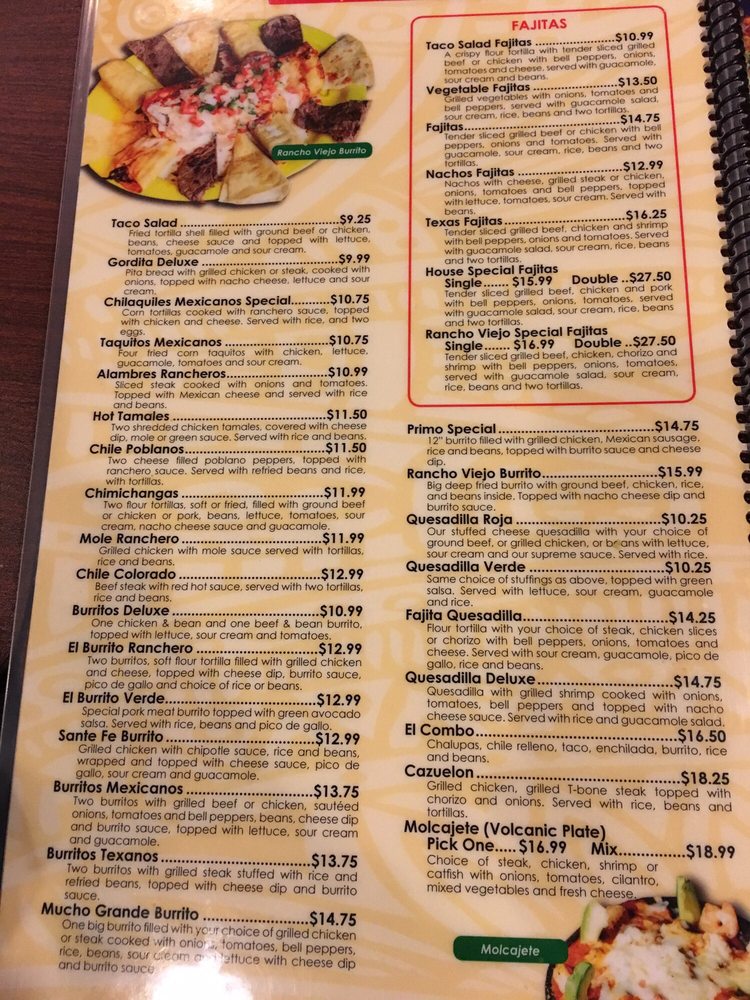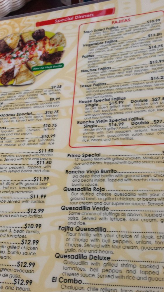 Rancho Viejo Menu